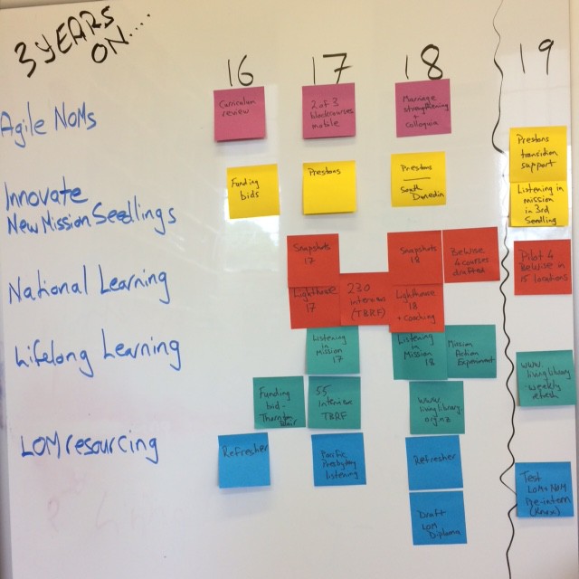Three years in; and just over 2 years on from gaining the green light from Council of Assembly, there has been progress across all areas. Each post-it is an explanatory blog post in its own right, but there is a pleasing spread of colour and activity. There is also increasing overlap, as Lighthouse innovation incubator weaves into the New Mission Seedlings and the livinglibrary website becomes a locator for both national learning and lifelong learning. There is much that beckons into 2019.